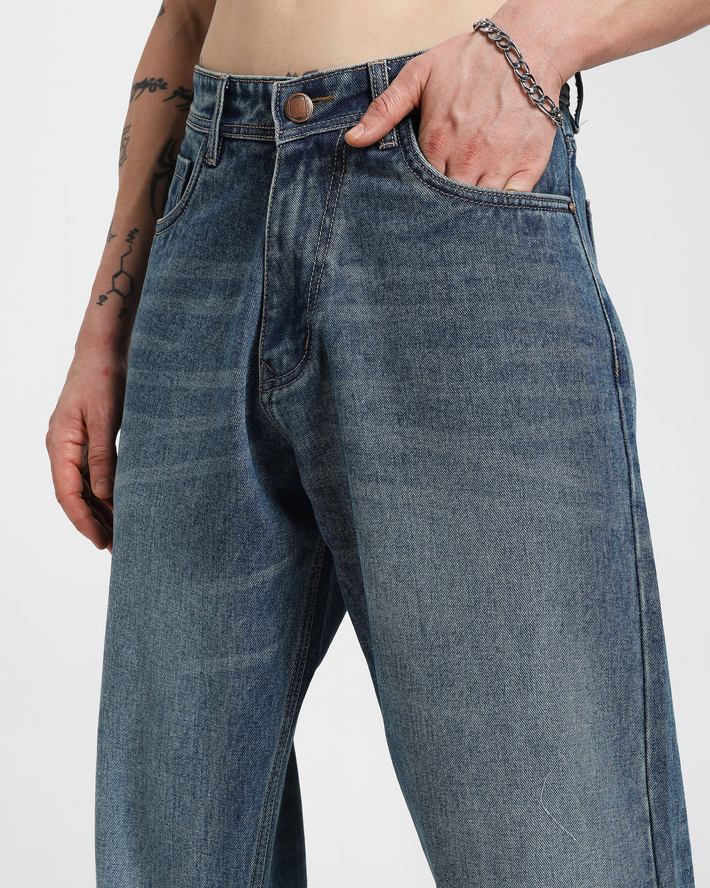 The color is giving the jeans a classic and versatile appeal. To enhance the look, the denim has been treated with multiple types of washes—often referred to as “minister washes.” These washes create a unique texture and subtle variations in shade, adding depth, character, and a slightly worn-in feel to the jeans.