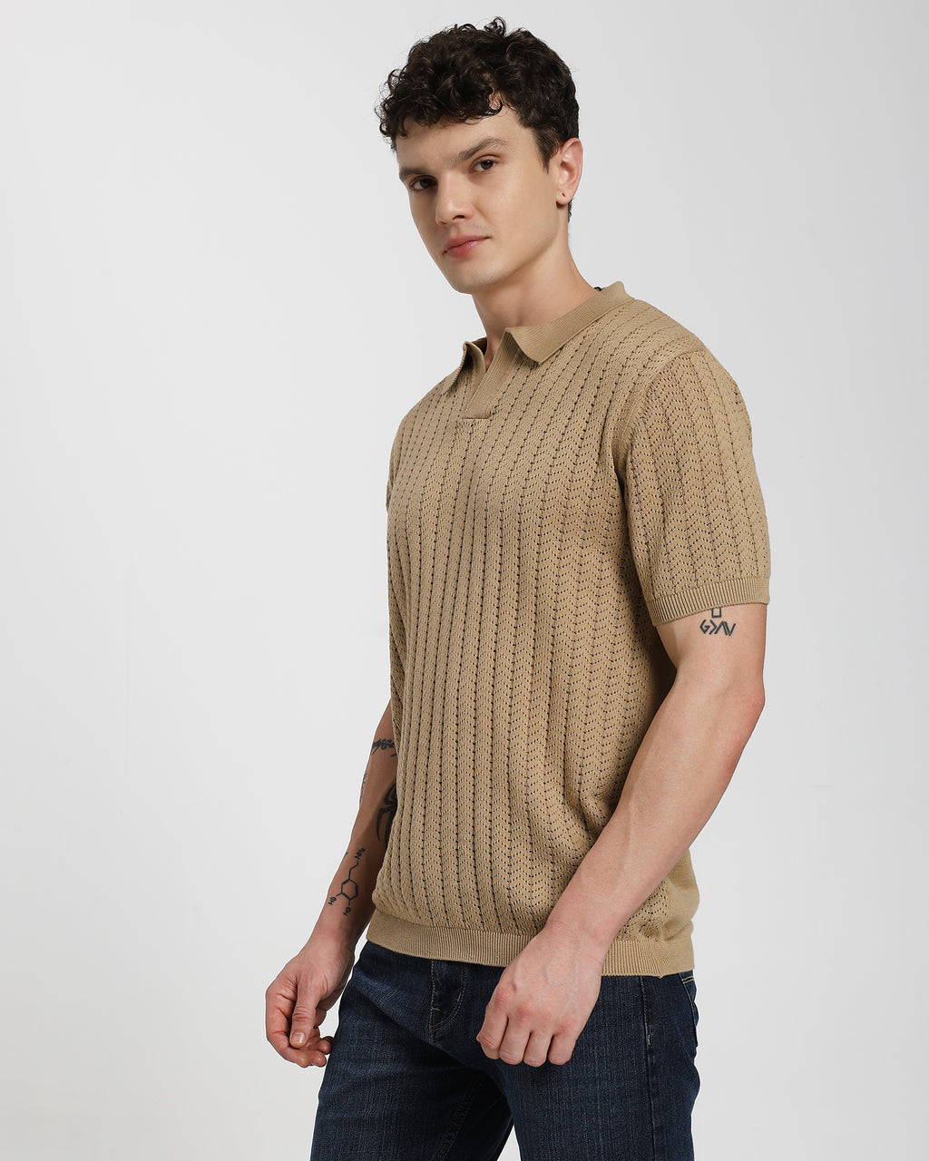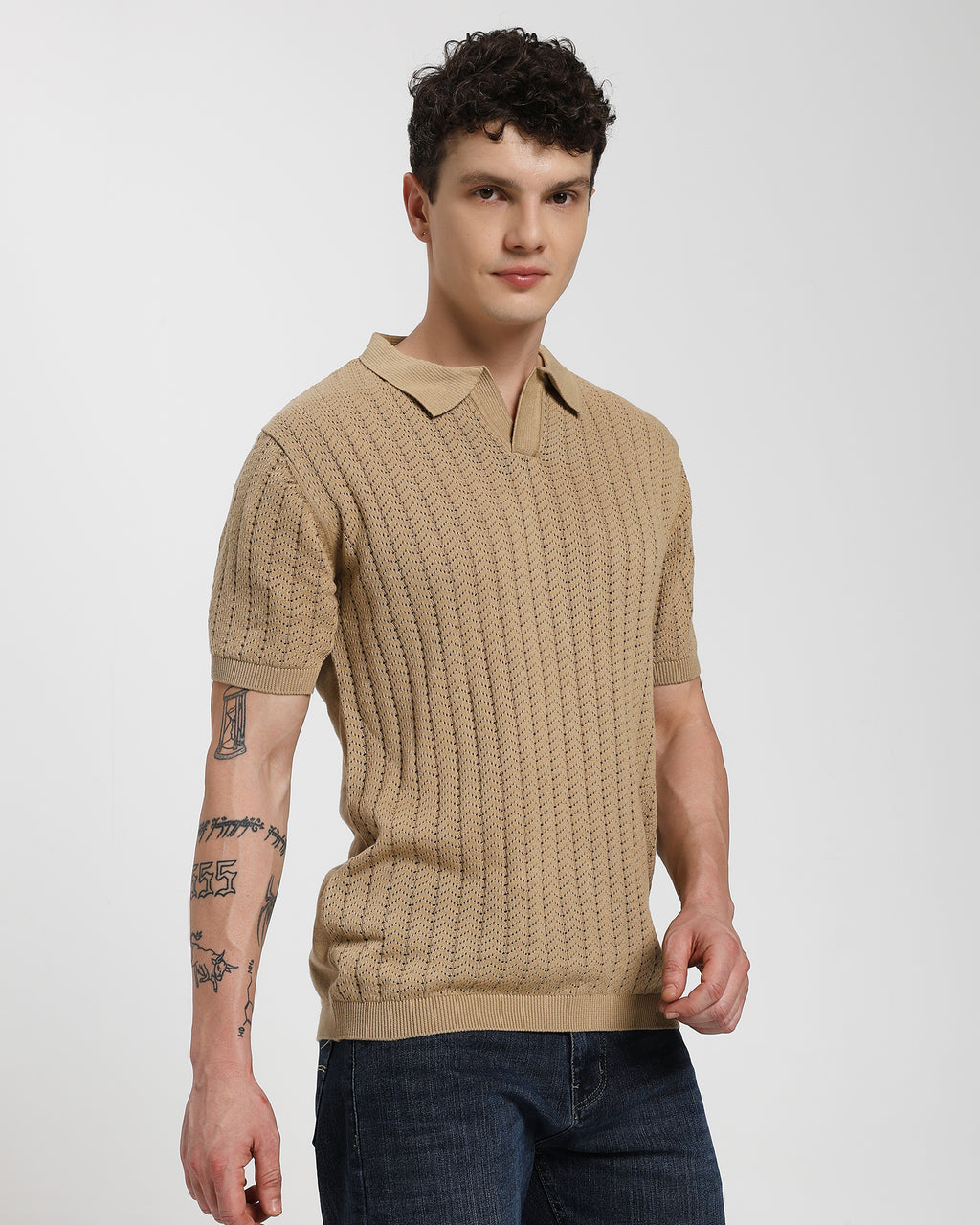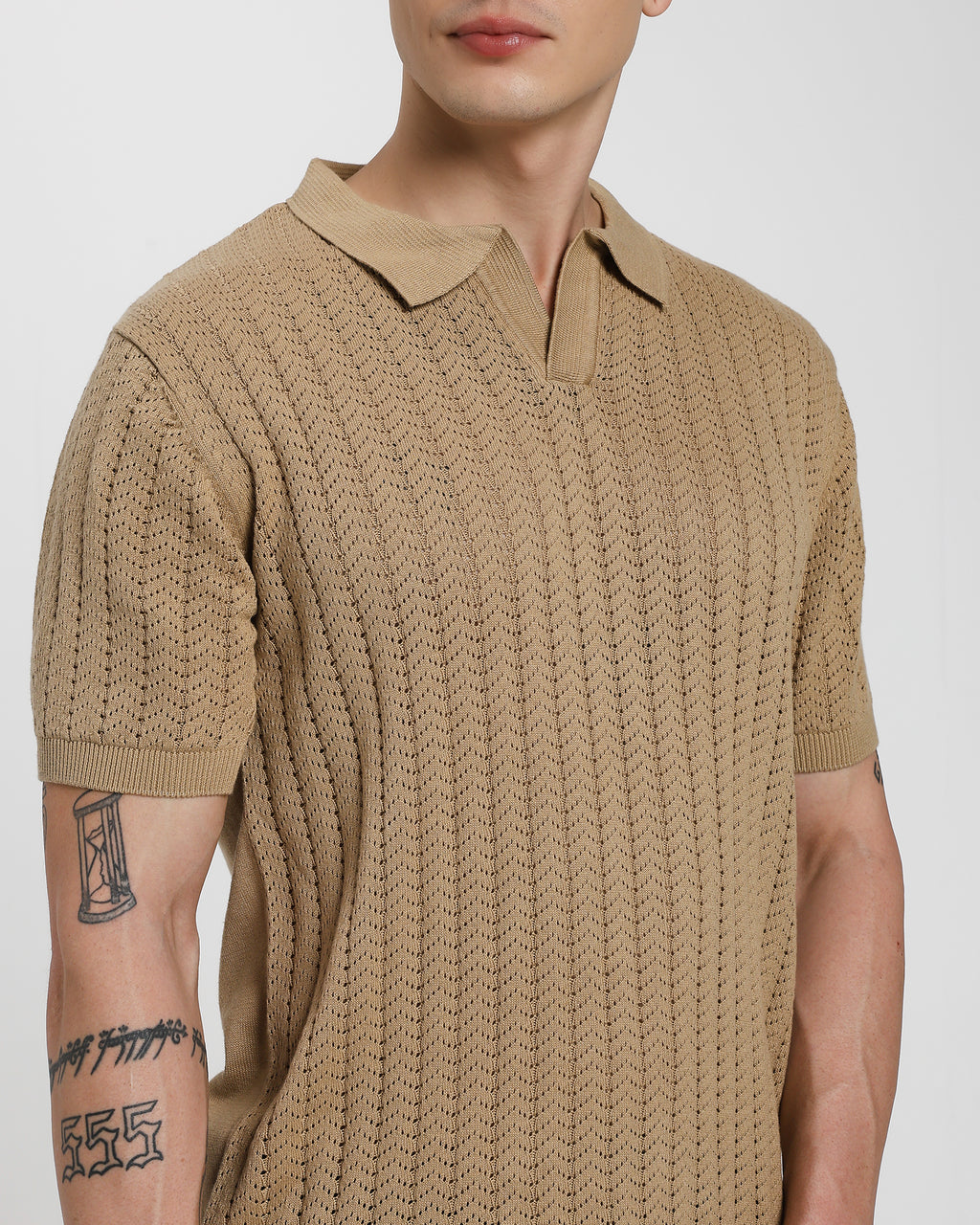Knitted T-shirt made from 100% cotton fabric, featuring a mesh design on the front for added style and breathability