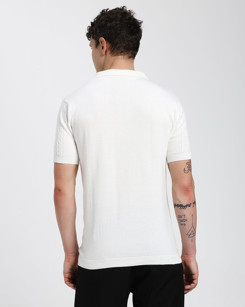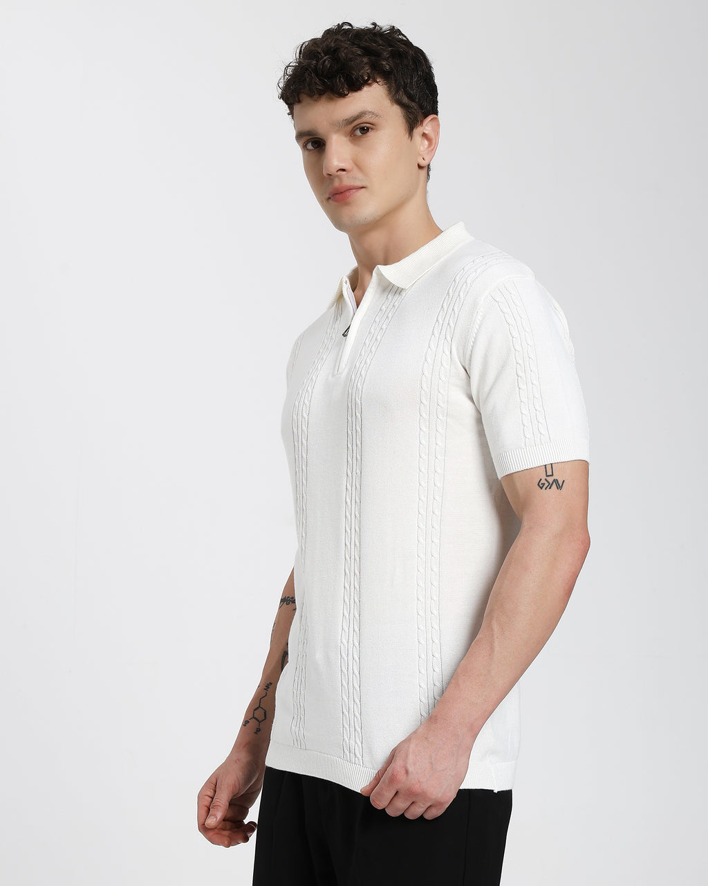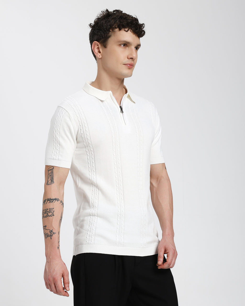 Knitted T-shirt made from 100% cotton fabric, designed with a stylish zip-up collar for a modern look.