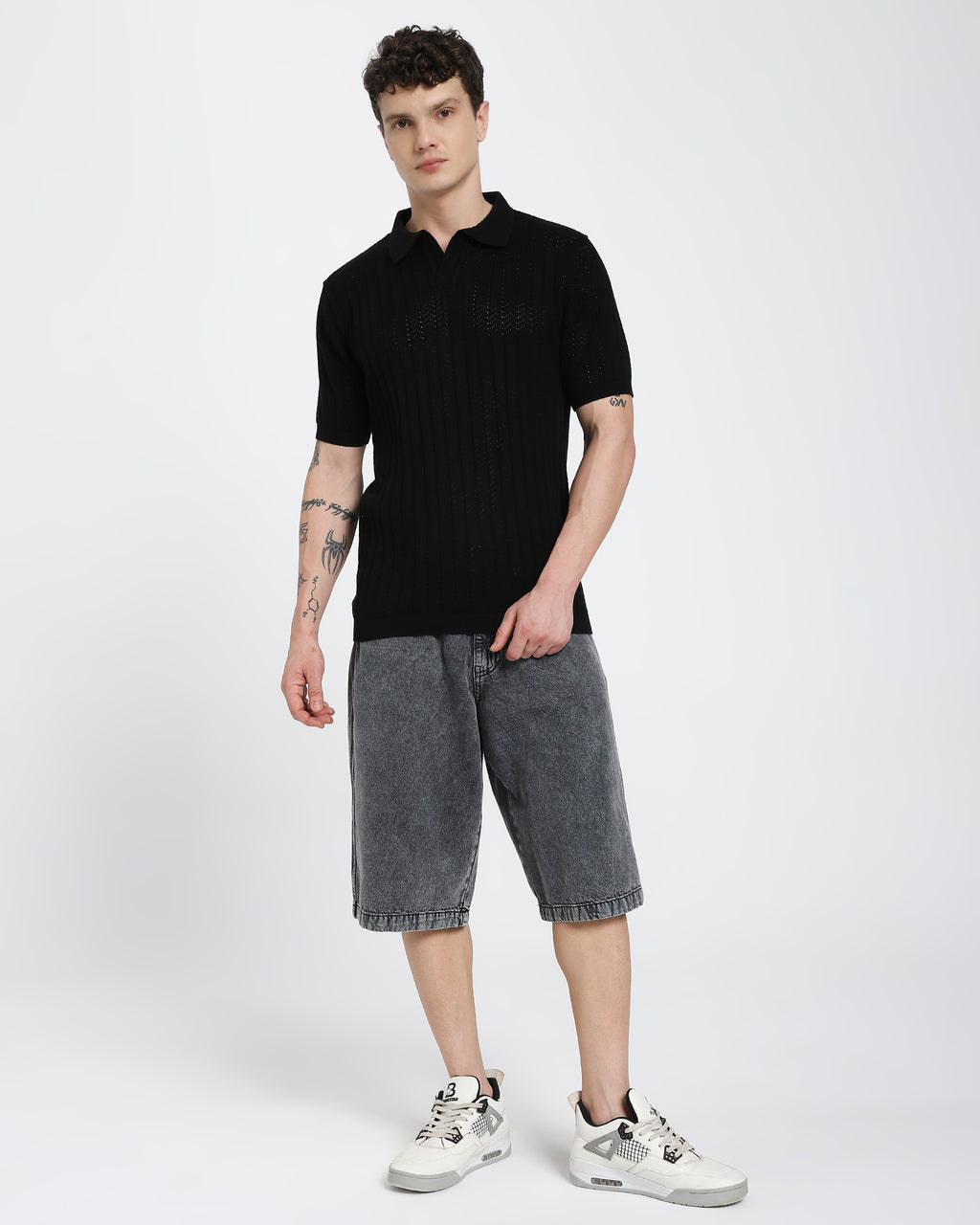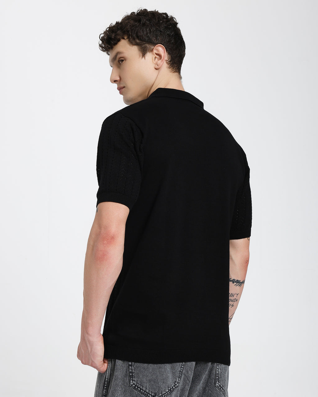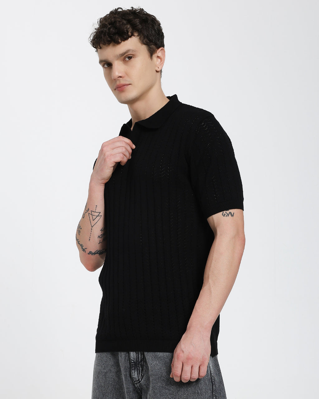 Knitted T-shirt made from 100% cotton fabric, featuring a mesh design on the front for added style and breathability