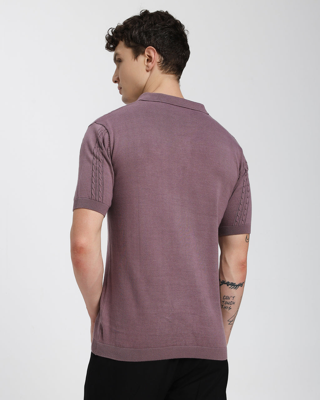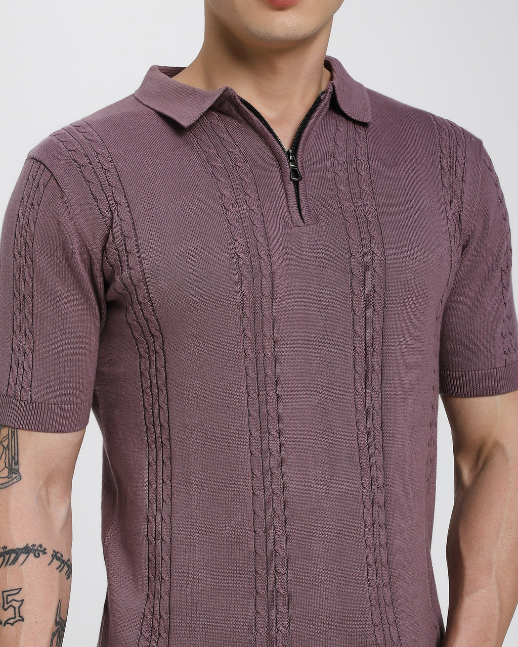 Knitted T-shirt made from 100% cotton fabric, designed with a stylish zip-up collar for a modern look.